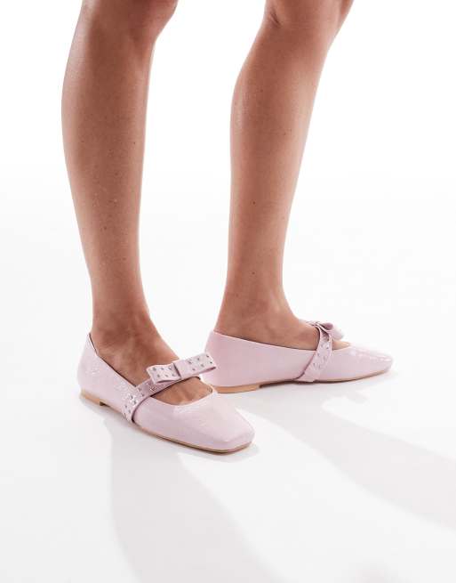 Glamorous ballerina flats with bow detail in pink