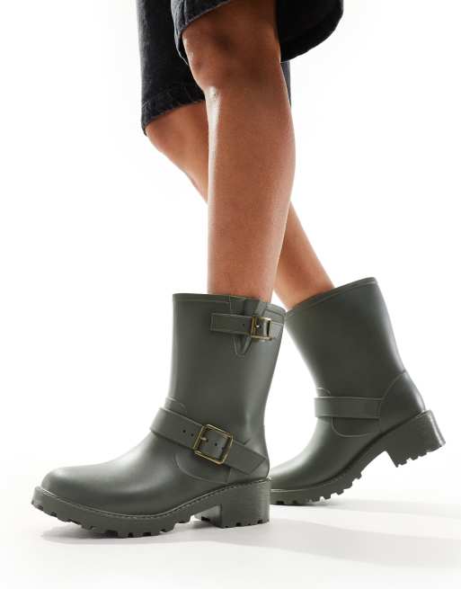 Glamorous biker rubber boots in khaki