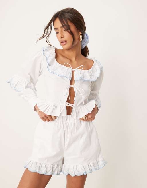 Glamorous boho ruffle boxer style shorts in white - part of a set