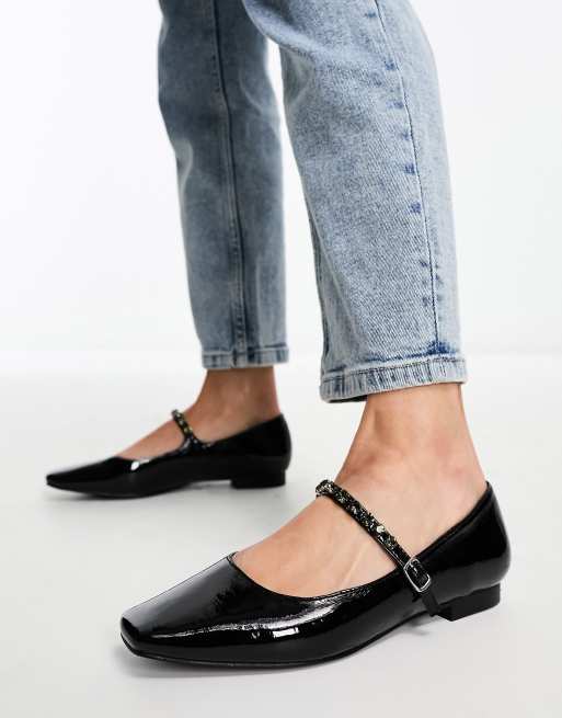 Glamorous embellished strap mary janes in black patent