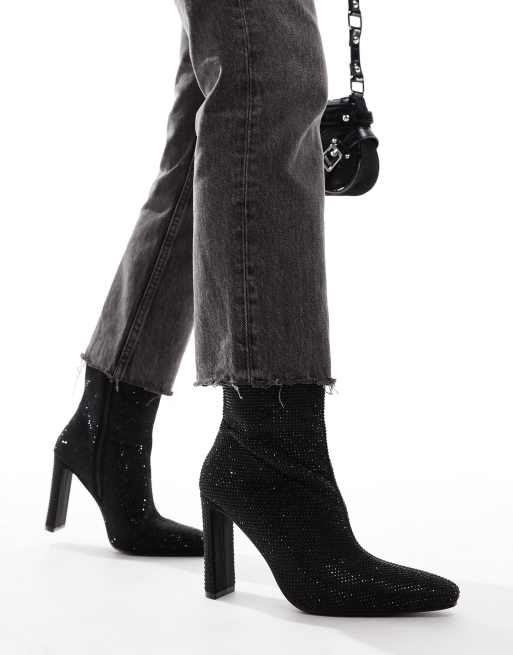 Glamorous heeled ankle boots in black embellished