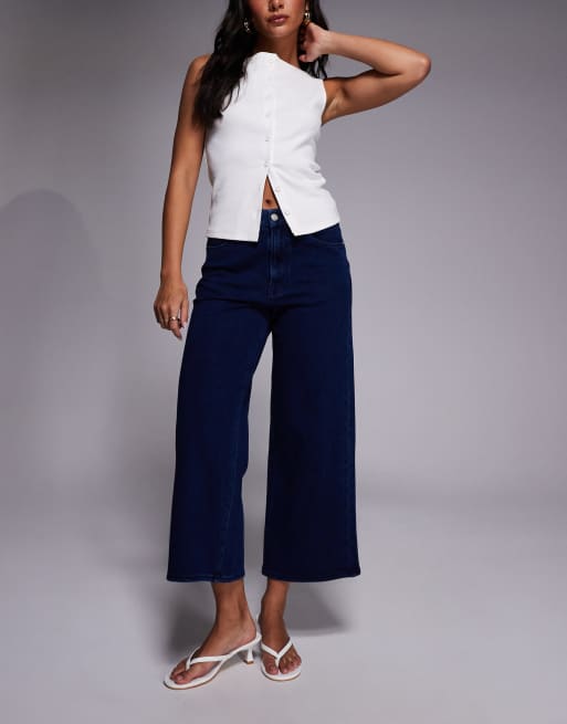 Good American jeanius cropped palazzo jeans in dark blue wash - part of a set