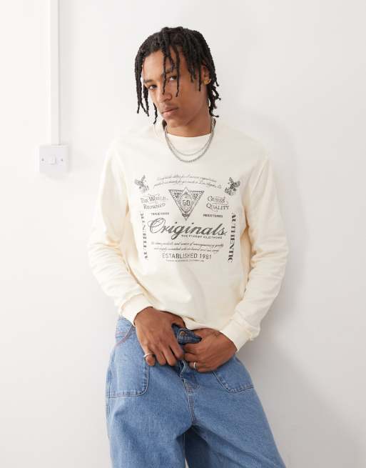 Guess Originals crew neck sweatshirt in off white with logo print