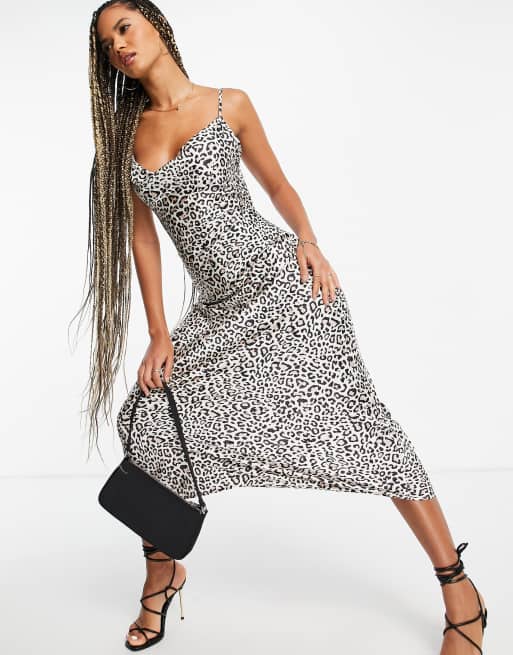 Guess scoop neck midi dress in leopard print