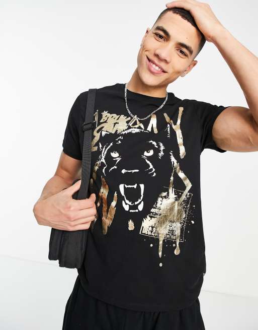 Guess t-shirt with gold lion logo in black