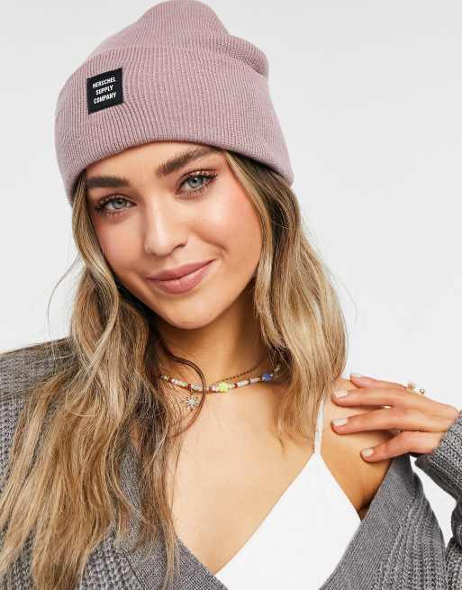 Herschel Supply Co Abbott black logo beanie in ash rose