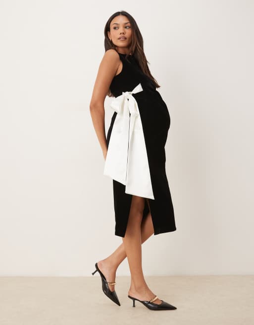 Hope & Ivy Maternity midi dress with contrast satin bow in black