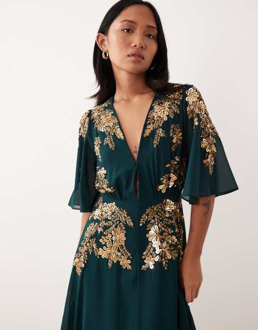 Hope & Ivy Petite V-neck embellished maxi dress in emerald