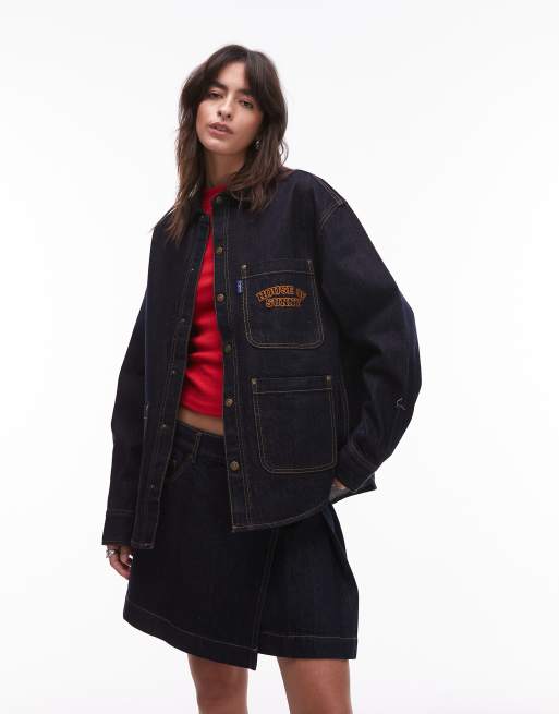 House of Sunny chain stitch cord collar denim shirt in indigo