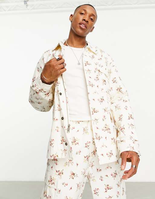 HUF field jacket in white with all over floral print - part of a set