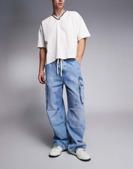 HUGO BLUE Enora loose fit carpenter jeans with drawstring waist in light blue
