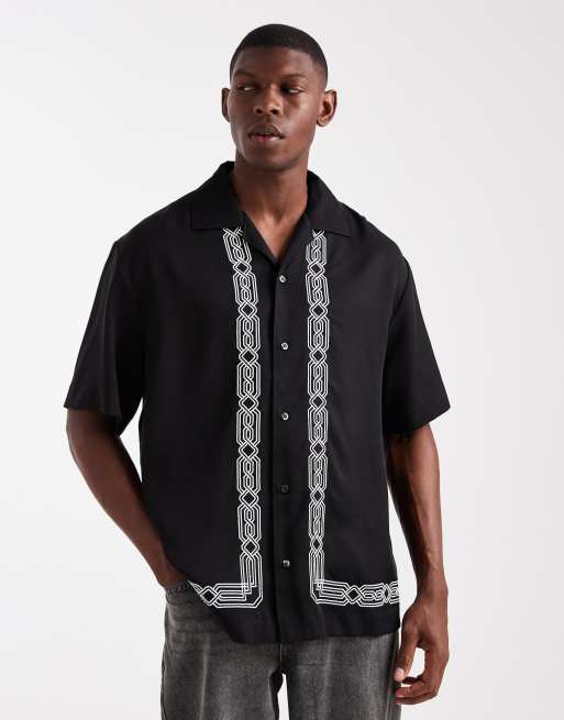 HUGO RED Espino border print oversized short sleeve shirt in black