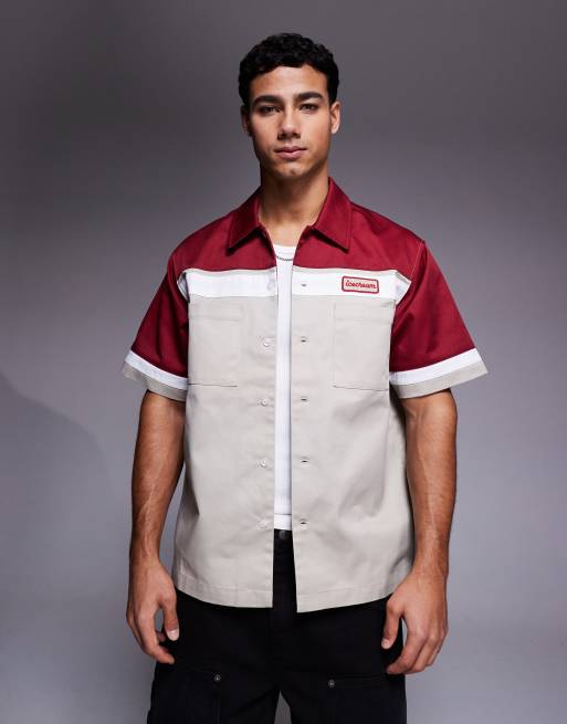 ICECREAM parlor work shirt with contrast panels in beige and red