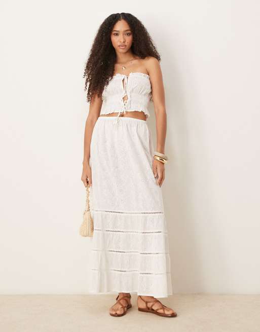 Iisla & Bird eyelet ruched tiered beach skirt in white