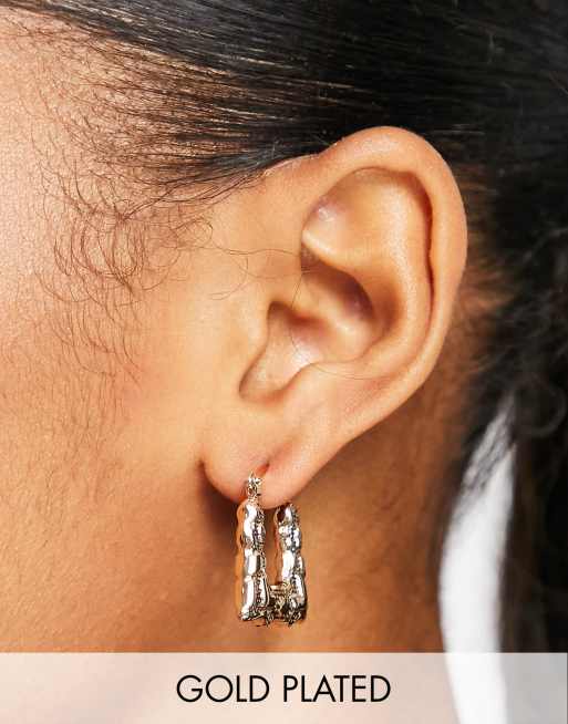 Image Gang 18k gold plated mini door knocker square hoop earrings