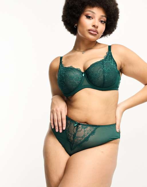 Ivory Rose Curve lace and mesh high leg high waist brazilian brief in emerald green