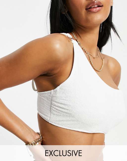 Ivory Rose Fuller Bust mix and match crinkle one shoulder top in white