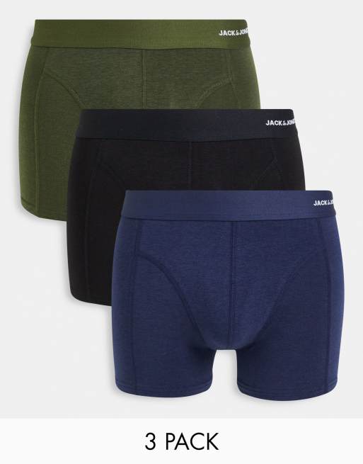 Jack & Jones 3-pack bamboo fiber trunks in black, navy and khaki