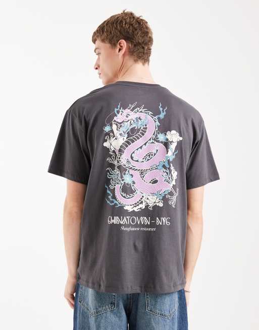 Jack & Jones dragon back print T-shirt in charcoal gray