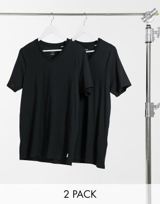 Jack & Jones Essentials 2 pack slim fit v-neck t-shirt in black