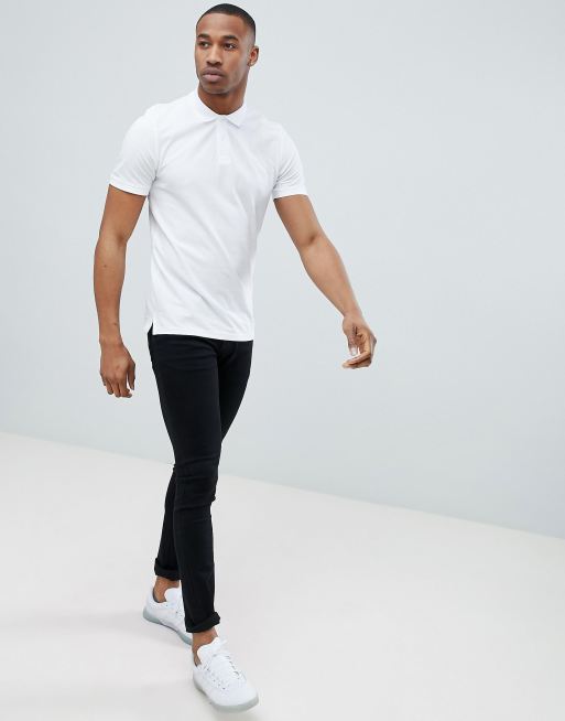 Jack & Jones Essentials slim fit pique logo polo in white