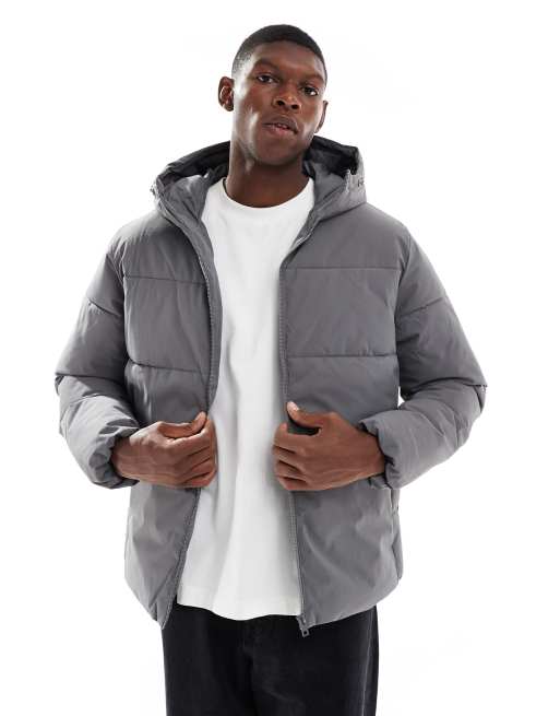 Jack & Jones hooded puffer jacket in gray