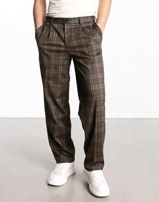 Jack & Jones Intelligence bill wide fit smart pants in brown check