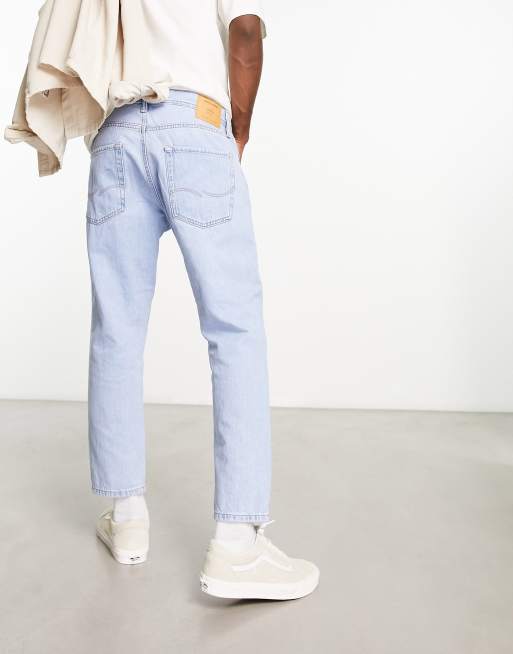 Jack & Jones Intelligence Frank tapered cropped jeans in light stone blue wash