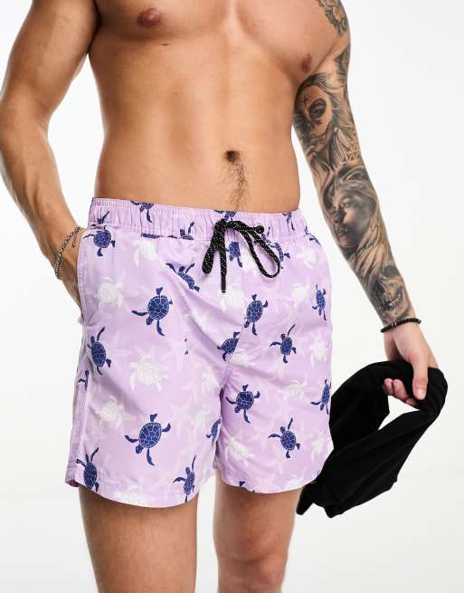 Jack & Jones Intelligence swim shorts in purple turtle print