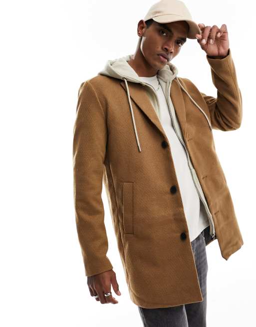 Jack & Jones jersey overcoat in camel