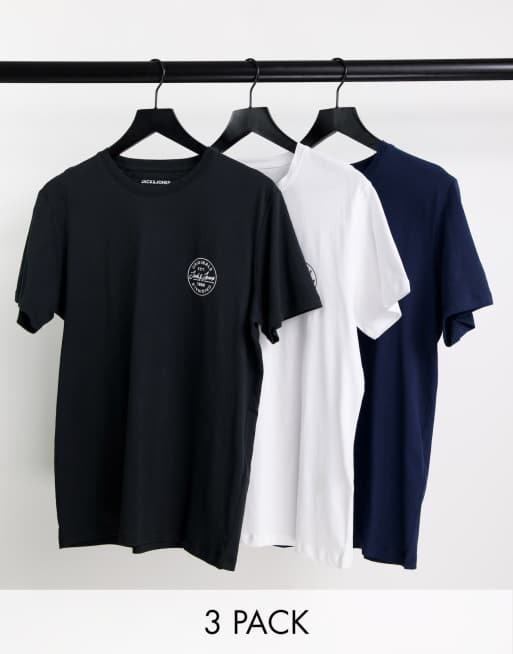 Jack & Jones Originals 3 pack logo t-shirt in multi