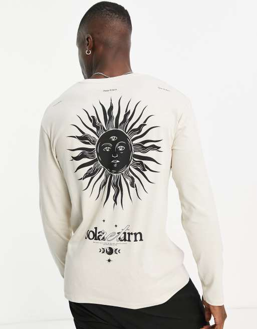 Jack & Jones Originals oversized long sleeve t-shirt with solar back print in beige