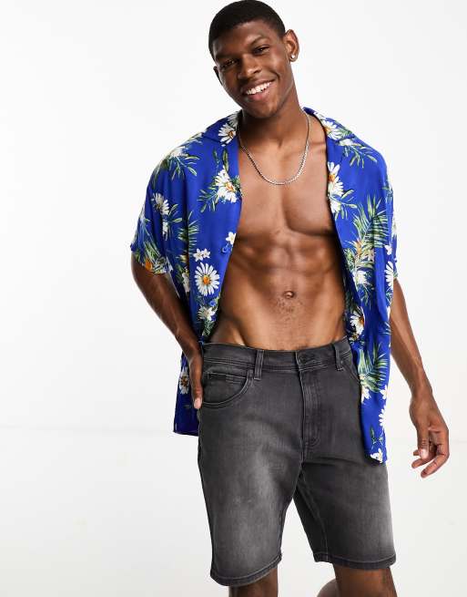 Jack & Jones Originals oversized revere collar shirt in blue daisy print