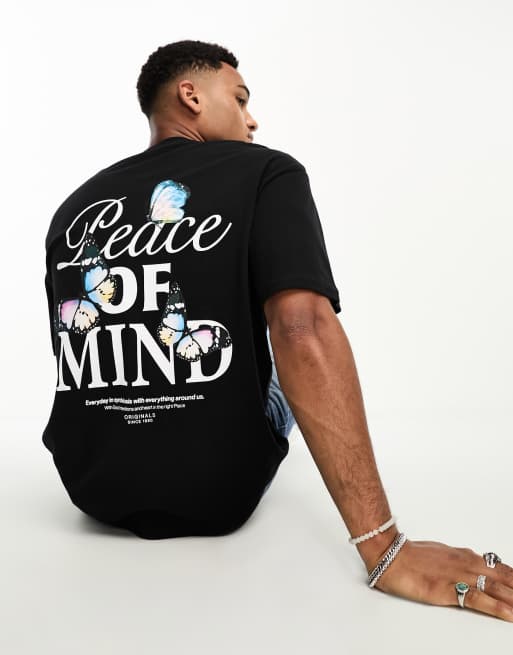 Jack & Jones Originals oversized t-shirt with peace of mind back print in black