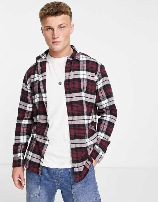 Jack & Jones Originals plaid flannel shirt in burgundy