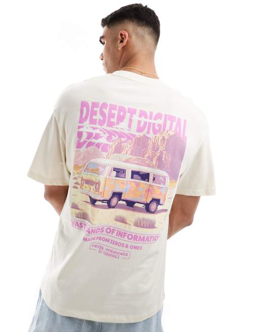 Jack & Jones oversized desert back print t-shirt in buttercream