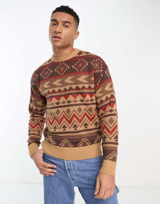 Jack & Jones oversized jacquard aztec stripe sweater in brown