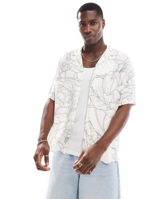 Jack & Jones oversized revere collar floral printed shirt in white