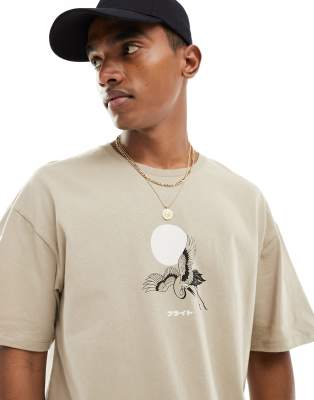 Jack & Jones oversized T-shirt with crane chest print in beige