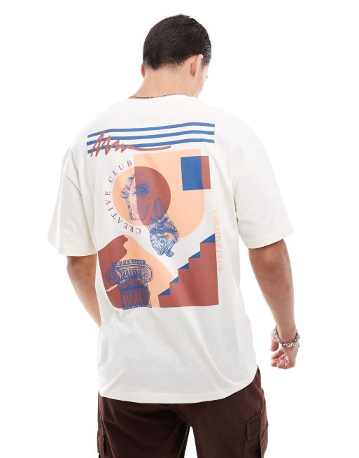 Jack & Jones oversized T-shirt with Creative Club back print in beige