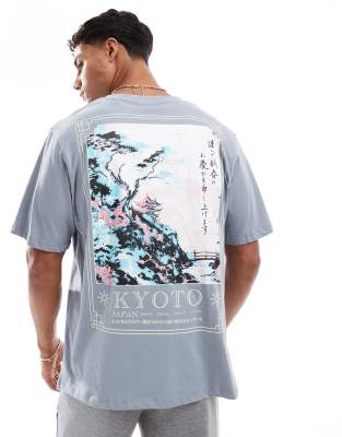 Jack & Jones oversized t-shirt with Kyoto print in gray