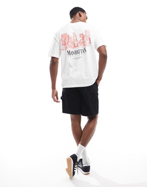 Jack & Jones oversized T-shirt with manhattan back print in white