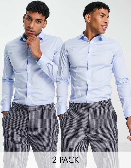 Jack & Jones Premium 2 pack smart shirts with cutaway collars in blue