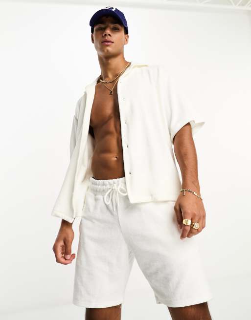 Jack & Jones Premium towelling revere collar shirt in white - part of a set