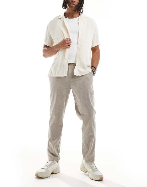 Jack & Jones slim tapered drawstring linen blend pants in beige