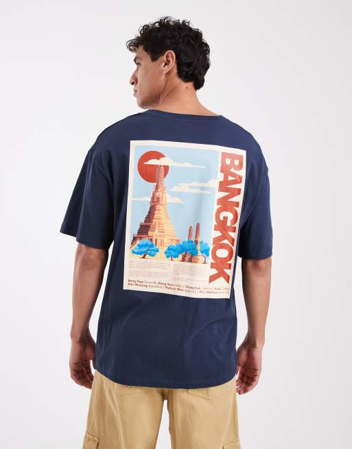 Jack & Jones T-shirt with bangkok back print in navy