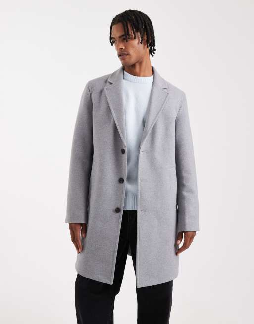 Jack & Jones wool blend overcoat in gray