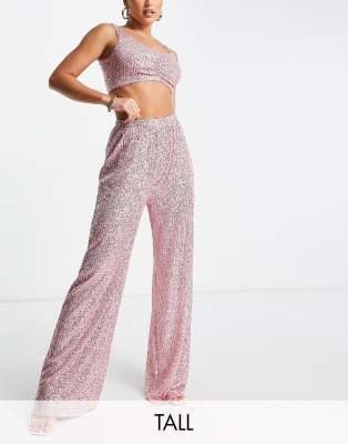 Jaded Rose Tall Exclusive sequin wide leg pants in rose gold - part of a set