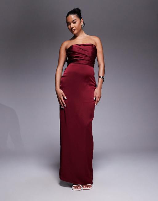 Jarlo bandeau satin maxi dress with bow back in burgundy