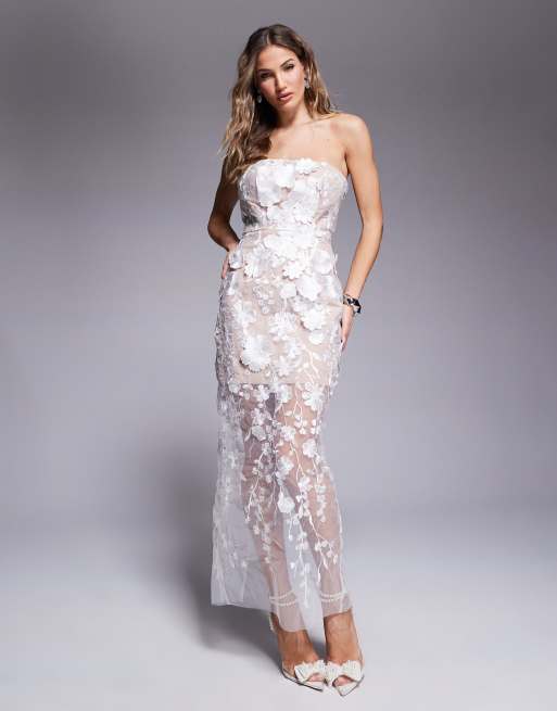 Jarlo embroidered mesh tube midaxi dress in ivory